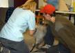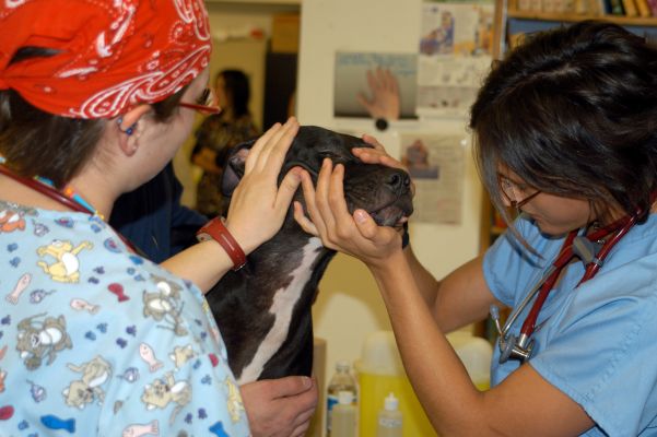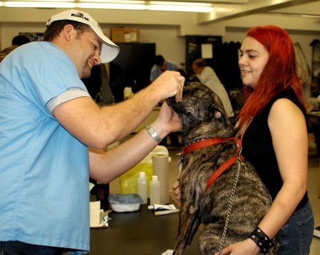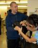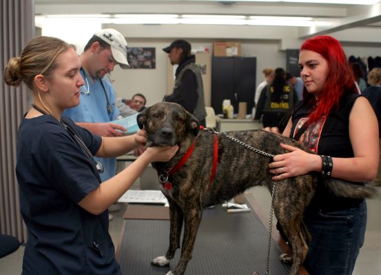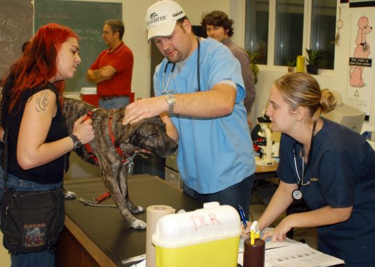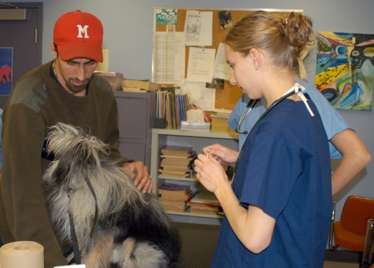 Chaque équipe est supervisée par un vétérinaire. Tout le temps nécessaire est accordé au propriétaire afin de répondre à toutes ses interrogations. La soirée de clinique est une façon de communiquer et d’atteindre ces jeunes. Les animaux deviennent rapidement une source de discussions, une façon de briser la glace. Les intervenants du centre utilisent également cette soirée pour discuter avec les jeunes alors qu’ils attendent leur consultation vétérinaire. En effet, ils ont pu constater que c’est un moment privilégié parce que les jeunes se confient beaucoup plus facilement en petit groupe que lors des dîners communautaires quotidiens au centre. L’animal a également un rôle à jouer puisqu’il sert de premiers contacts entre le jeune et l’intervenant. Des discussions pertinentes surviennent également lors de l’examen de l’animal. Les jeunes ont un respect énorme pour leur compagnon et entretiennent une relation très particulière avec lui. Il représente pour eux une sécurité, une protection contre le froid et, dans bien des cas, leur seule famille. Plusieurs nous racontent comment l’histoire d’amour a débuté, comment ils parviennent à nourrir leur compagnon et à lui procurer une qualité de vie qui est parfois impressionnante : plusieurs de ces jeunes fournissent deux repas par jour à leur animal alors qu’ils n’en auront peut-être pas un seul complet eux-mêmes. En conclusion, l’activité est valorisante pour tous. Pour les étudiants en médecine vétérinaire, elle représente une chance unique d’acquérir une expérience clinique très enrichissante. Le contact chaleureux que ces jeunes établissent avec les étudiants et la démonstration de leur reconnaissance aide à réaliser l’importance de développer dans la pratique de la médecine vétérinaire une ouverture d’esprit et une grande empathie. Pour ce qui est des jeunes de la rue, les échanges que nous avons avec eux permettent de les sensibiliser aux problèmes de santé qui peuvent affecter leur compagnon ainsi qu’à l’importance de l’examen de santé annuel et de la médecine préventive (alimentation adéquate, vaccination, traitements des parasites internes et externes, troubles de comportement, nécessité de l’examen annuel, etc.). Les échanges permettent également de les renseigner sur la santé publique en les sensibilisant aux risques de zoonoses (maladies transmissibles des animaux aux humains) comme les puces, la teigne, la rage, etc. Une plus grande responsabilisation face à l’importance de la stérilisation de leur animal de compagnie, afin d’éviter une surpopulation et/ou des euthanasies inutiles est aussi atteinte. Non seulement, l’animal n’est plus le seul contact qu’ils ont avec le monde, mais il devient, un peu grâce à nous, une façon de survivre et de s’en sortir…