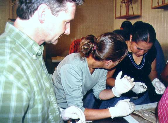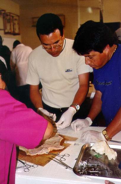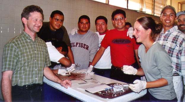 Denis Harvey fait un peu d'anatomie en espagnol. Tout au long de la semaine, cours magistraux et laboratoires se sont succédés à un rythme effréné, les étudiants étant très avides de profiter au maximum de la présence des deux professeurs de notre Faculté!